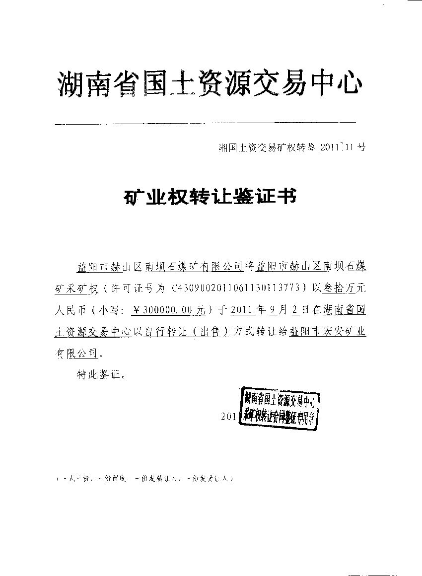 湘国土资交易矿权转鉴【2011】11号